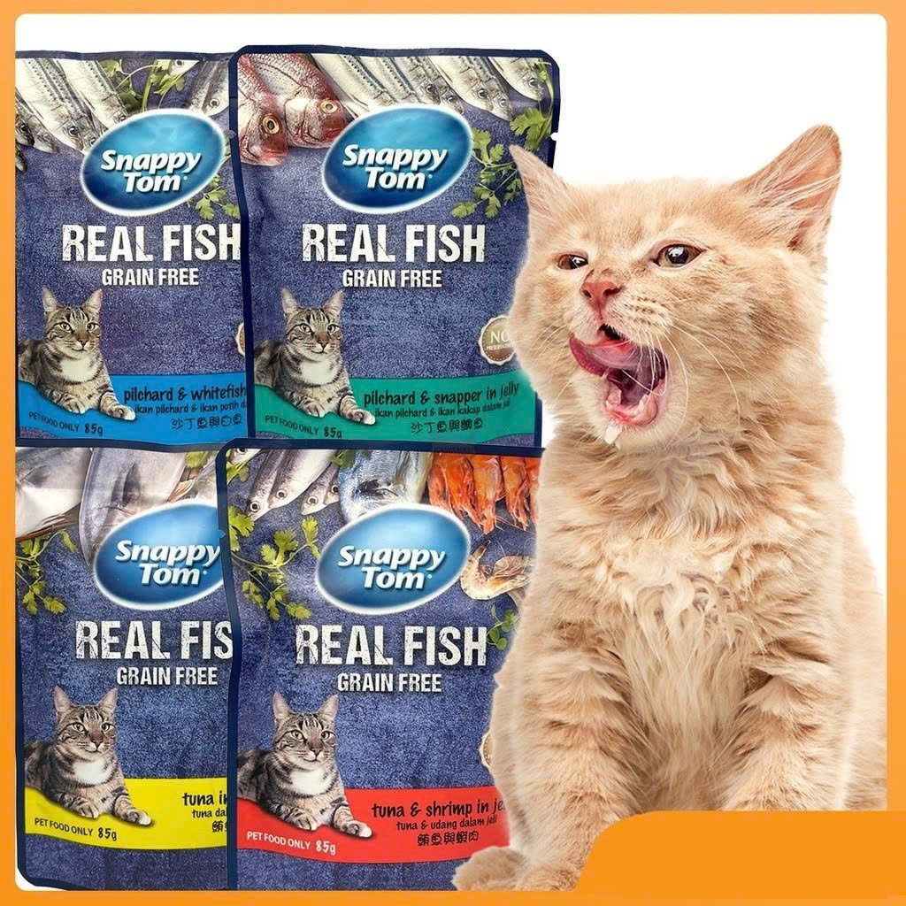 Đánh giá Pate Snappy Tom Real Fish - Real Meat vị cá mồi và cá hồng trong thạch cho mèo