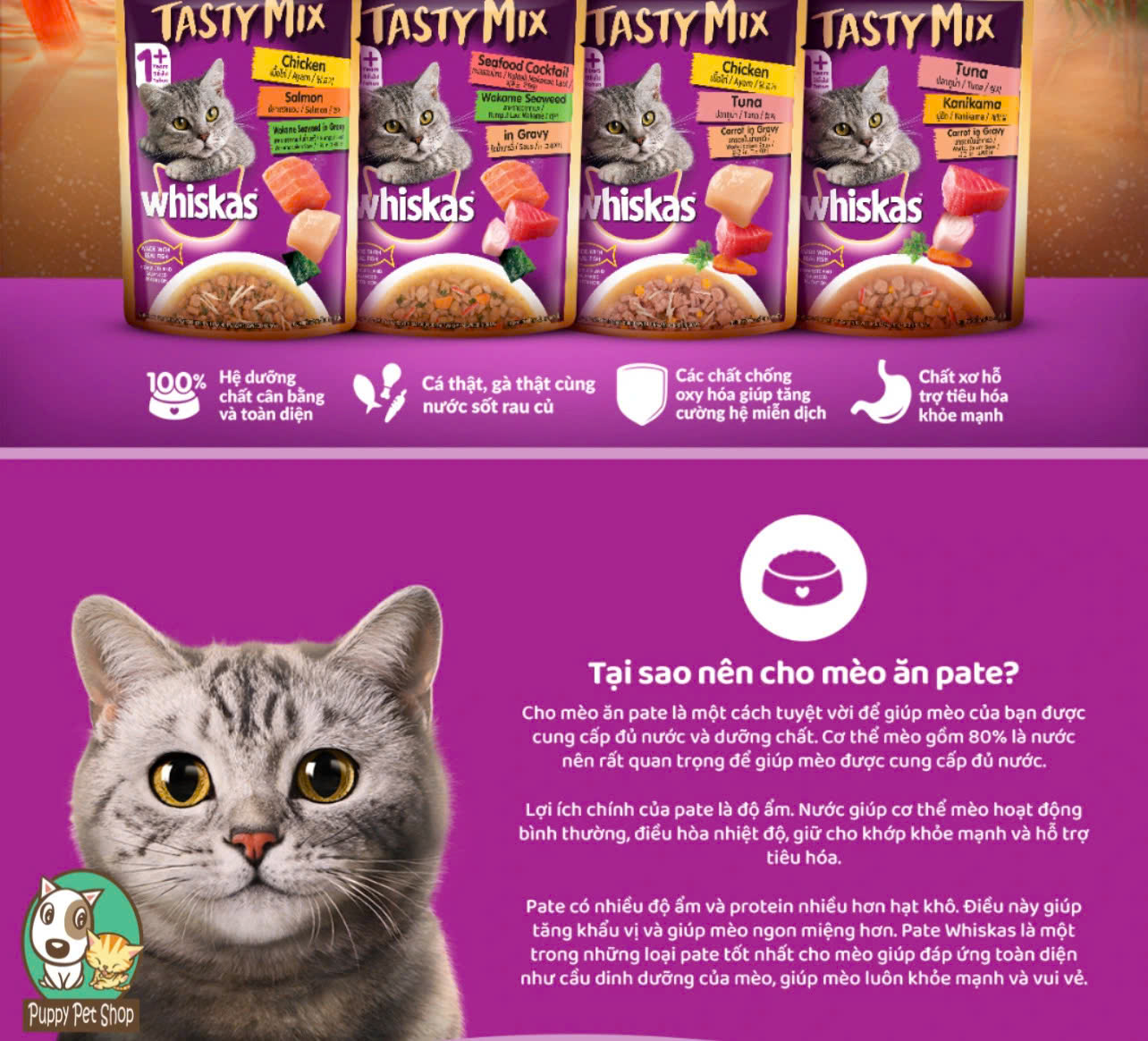 Hướng dẫn sử dụng Pate Whiskas Tasty Mix: